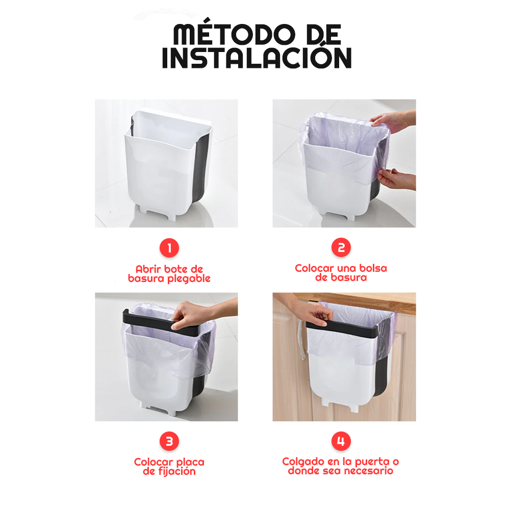 Presentamos Nuevo Basurero Plegable, limpia fácilmente tu encimera con un empujón. ¡Empuje esas peladuras de verduras rápidamente a su cubo de basura colgado! te ayudará a ahorrar espacio, tiempo y evitará que tengas que doblar la espalda cada vez que necesites botar algún desecho.