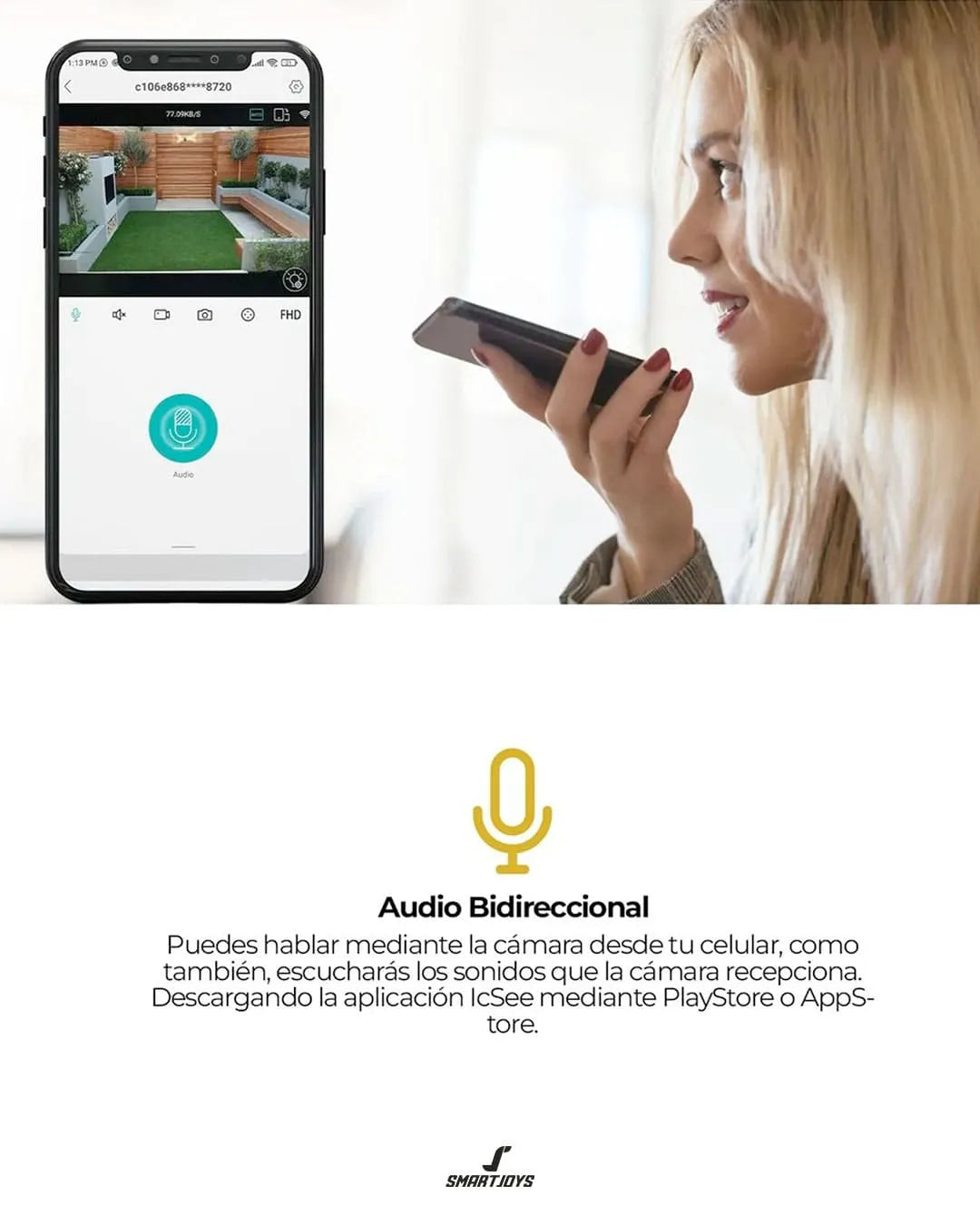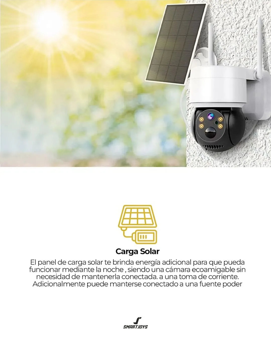 Aplicación: ICSEEformato de compresión: h.265resolución: 2048* 1536ángulo de cardán: horizontal 355 vertical 120velocidad de rotación: 55 segundos horizontal 40/seg verticalvisión nocturna a todo color: iluminación 0.00001 luxdistancia led infrarroja: 98 piesaltavozincorporado micrófono incorporadolen: 4 mm almacenamiento local: tarjeta tf de hasta 128 g (tarjeta no incluida)modo de fuente de alimentación: batería solar (incluye batería de 6 piezas)potencia de la batería solar: 6wentorno de trabajo: interior/exteriorimpermeable: ip66funcionamiento temperatura: 25c 50chumedad de trabajo: 0 por ciento 90 por ciento rh la cámara de seguridad de batería solar inalámbrica al aire libre alimentada por baterías recargables incorporadas y panel solar de bajo consumo y fácil instalación. rango de rotación vertical de 355 horizontal1 20 ángel de visión proporciona una visualización panorámica completa de 360 grados disfruta de imágenes y video full hd 1080p día y noche . la cámara de seguridad solar también admite la detección de movimiento pir de visión nocturna y audio bidireccional.