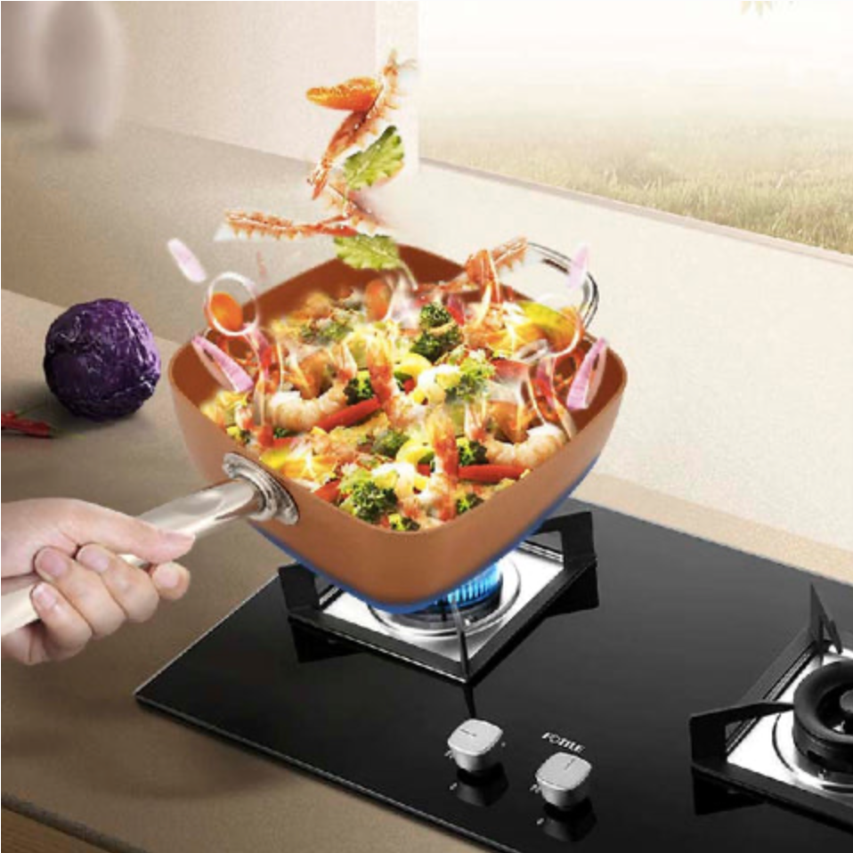 Esta olla multiusos tiene un diseño único y forma cuadrada, se puede utilizar para hornear, freír, asar, cocina al vapor, etc.