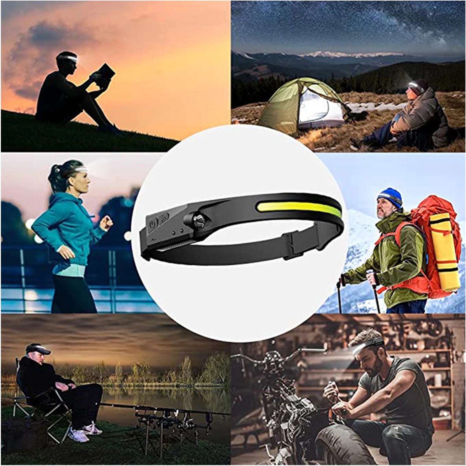 La linterna frontal recargable tiene 5 modos para satisfacer todas tus necesidades: modo alto COB, modo bajo COB, modo alto XPE, modo bajo XPE y modo estroboscópico.