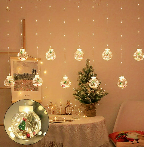 2 CORTINAS DE 3 METROS DE BOLAS NAVIDEÑAS