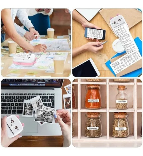 Fotos, etiquetas, pegatinas, mensajes, listas, registros y códigos QR. Se puede utilizar para imprimir notas y notas de botella en casa. La impresora de etiquetas le permite imprimir notas mientras trabaja. Y se puede utilizar para notas, fotos, etc. mientras viaja.